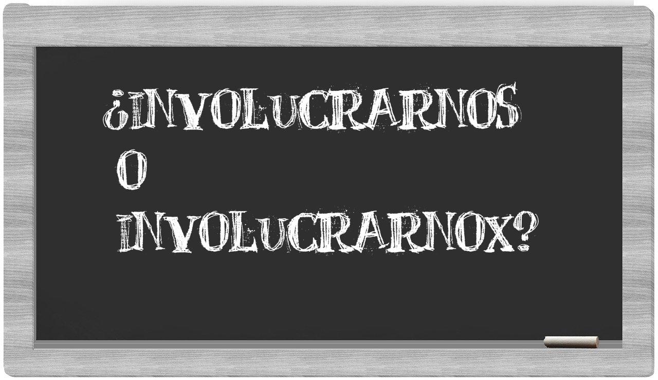En la particular situación que involucra a involucrarnos y involucrarnox, no deberías vacilar en tu elección, puesto que únicamente involucrarnos está correctamente formulada. Por su parte, involucrarnox no está registrada en el prestigioso Diccionario de la Real Academia Española.