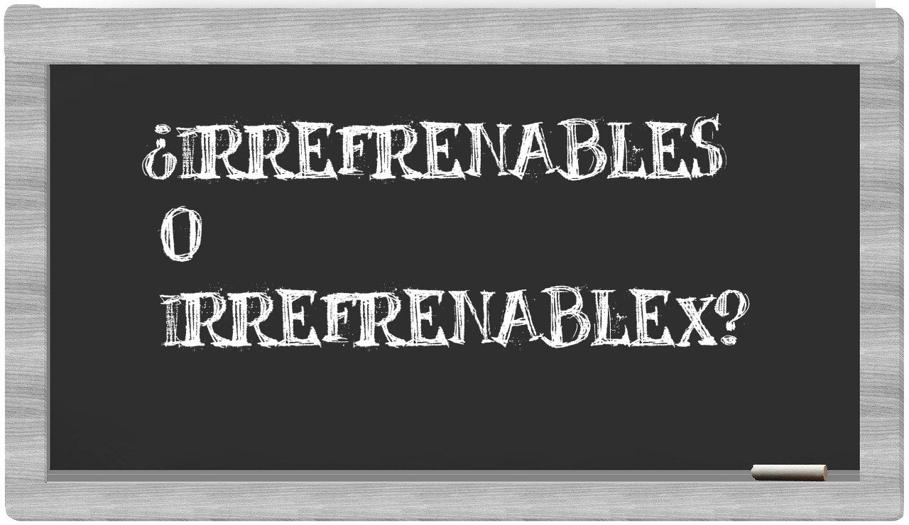 Cuando se trata de las palabras irrefrenables y irrefrenablex, nunca deberías tener vacilaciones, dado que únicamente irrefrenables está correctamente redactada. Cabe mencionar que irrefrenablex no se encuentra en el diccionario oficial de la Real Academia Española.