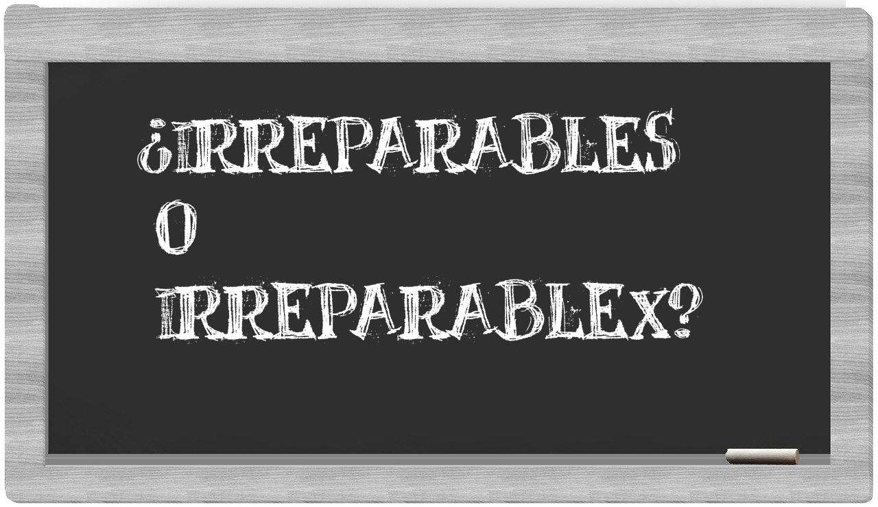 En lo que respecta a la distinción entre irreparables y irreparablex, no debería haber lugar para la incertidumbre, puesto que únicamente irreparables se encuentra registrada adecuadamente. Por otro lado, irreparablex no se halla en el compendio de la Real Academia Española.