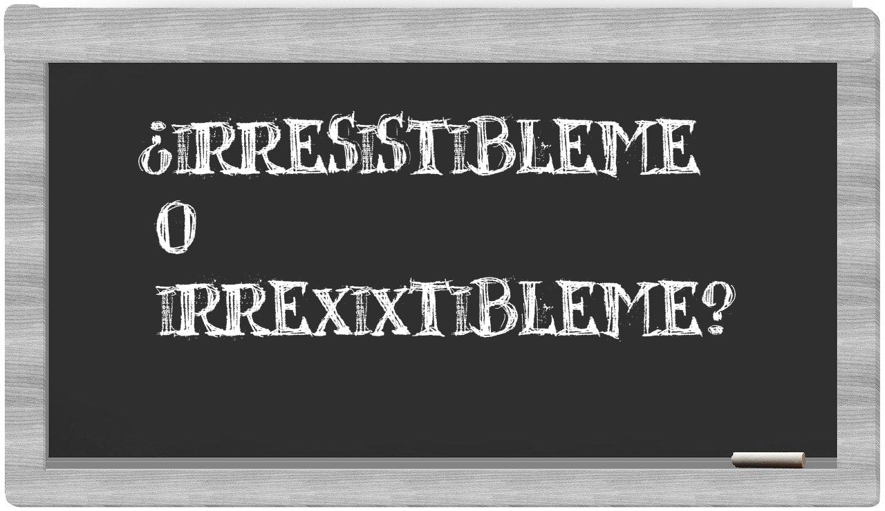 Cuando se trata de decidir entre los términos irresistibleme y irrexixtibleme, la elección debe ser clara y sin titubeos, ya que únicamente irresistibleme es la forma adecuada y aceptada; por otro lado, irrexixtibleme no se encuentra registrado en el Diccionario de la Real Academia Española.