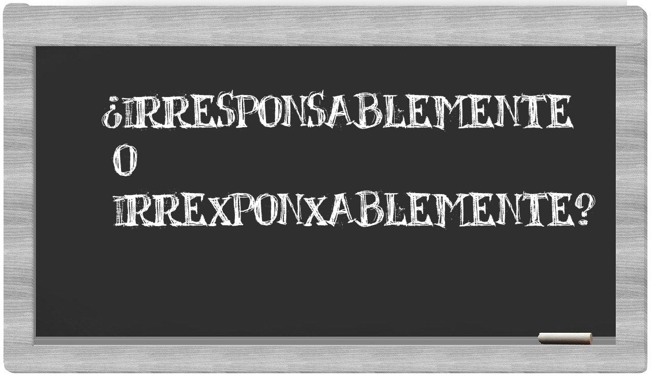 Cuando te enfrentes a la disyuntiva entre irresponsablemente y irrexponxablemente, no hay lugar para la incertidumbre, porque únicamente irresponsablemente es la que se encuentra validada y aceptada, mientras que irrexponxablemente no figura en el prestigioso Diccionario de la Real Academia Española.