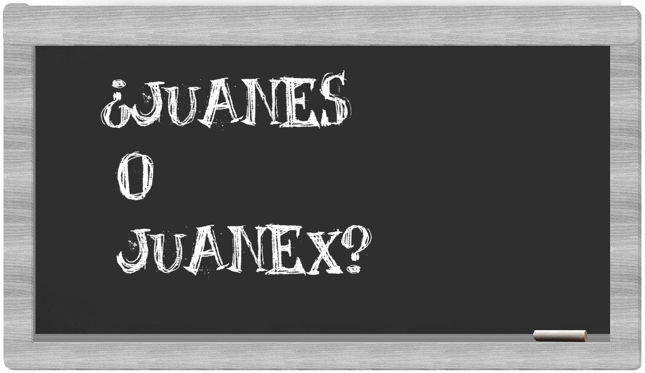 En lo que respecta a la comparación entre juanes y juanex, nunca deberías experimentar incertidumbre, porque únicamente juanes es la forma correcta de escribirlo. Por otra parte, juanex no tiene cabida en el Diccionario de la Real Academia Española.
