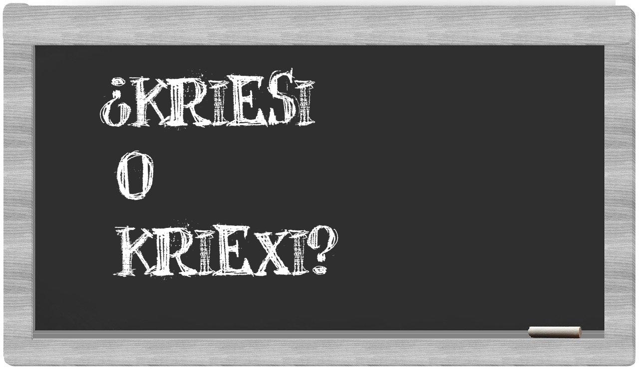 En la particular situación que existe entre los términos kriesi y kriexi, nunca debería haber incertidumbre, puesto que únicamente kriesi se encuentra correctamente formulada. La palabra kriexi no figura en el Diccionario de la Real Academia Española.