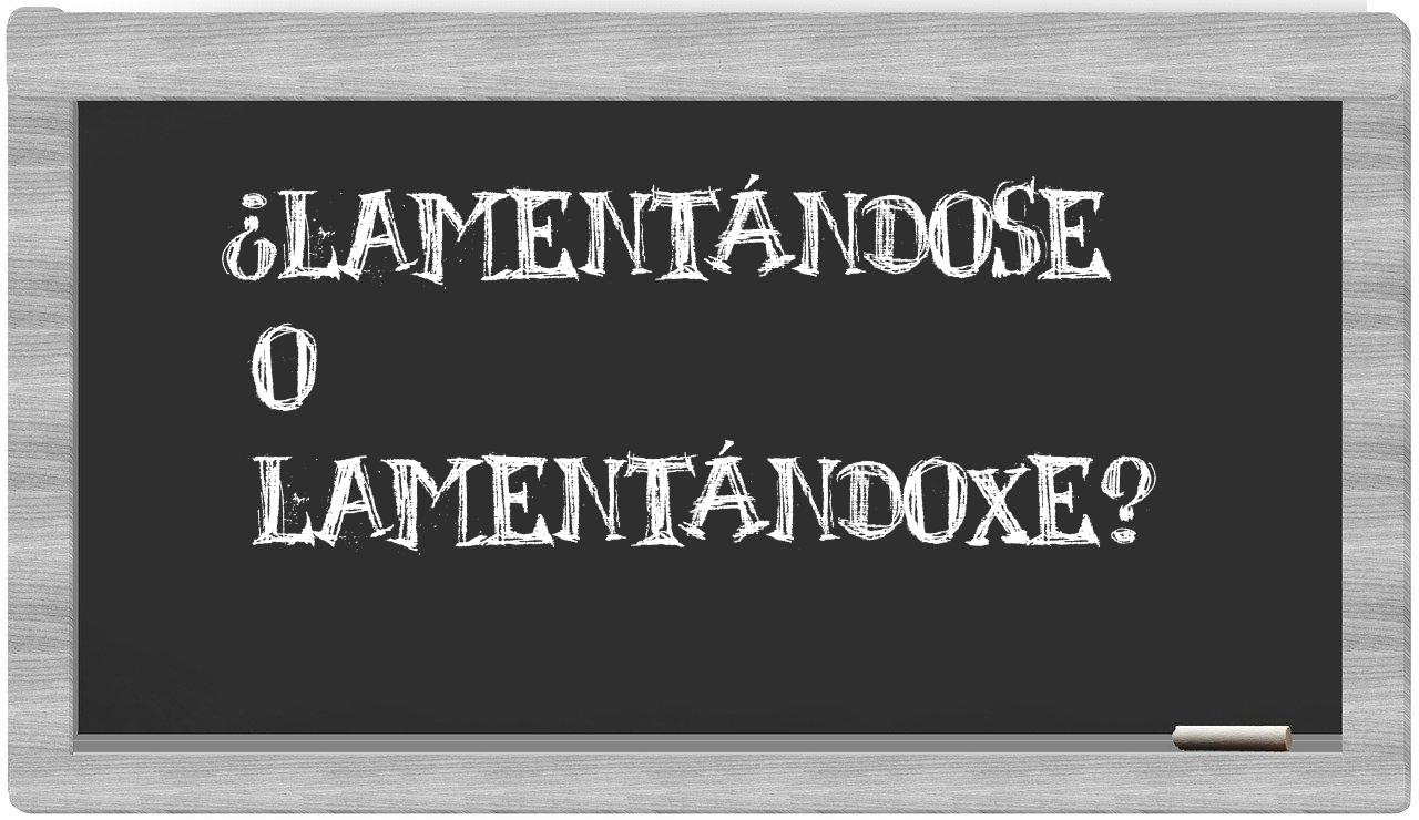 Cuando se trata de la elección entre las palabras lamentándose y lamentándoxe, no hay lugar para la indecisión, puesto que únicamente lamentándose se encuentra en el registro aceptado, mientras que lamentándoxe no figura en el glosario de la Real Academia Española.