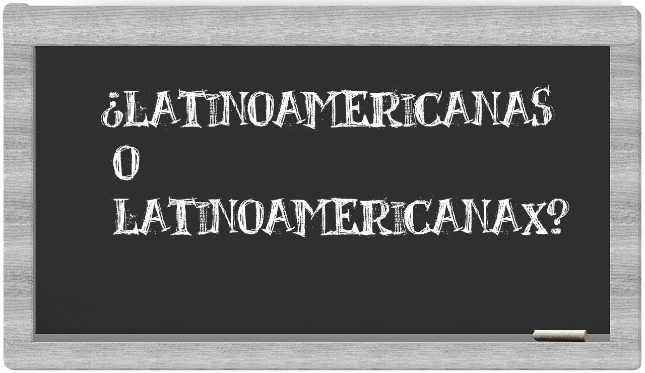 En la situación particular que involucra los términos latinoamericanas y latinoamericanax, no deberías experimentar la más mínima incertidumbre, dado que únicamente latinoamericanas se presenta como la opción adecuada. Por otro lado, latinoamericanax carece de reconocimiento en el Diccionario de la Real Academia de la Lengua.