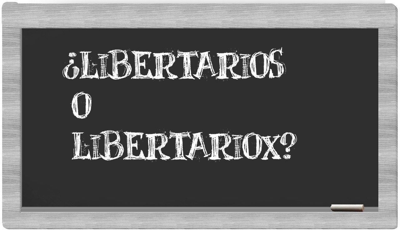 Cuando se presenta la disyuntiva entre libertarios y libertariox, no hay lugar para la incertidumbre, porque únicamente libertarios se encuentra correctamente redactada. Por otro lado, libertariox es una palabra que no se halla registrada en el Diccionario de la Real Academia Española.