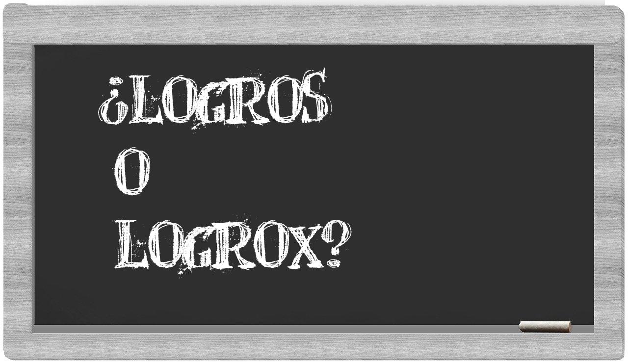 En la situación particular entre los términos logros y logrox nunca deberías titubear, puesto que únicamente logros es el que se encuentra correctamente redactado. Por otro lado, logrox no figura en el léxico de la Real Academia Española.