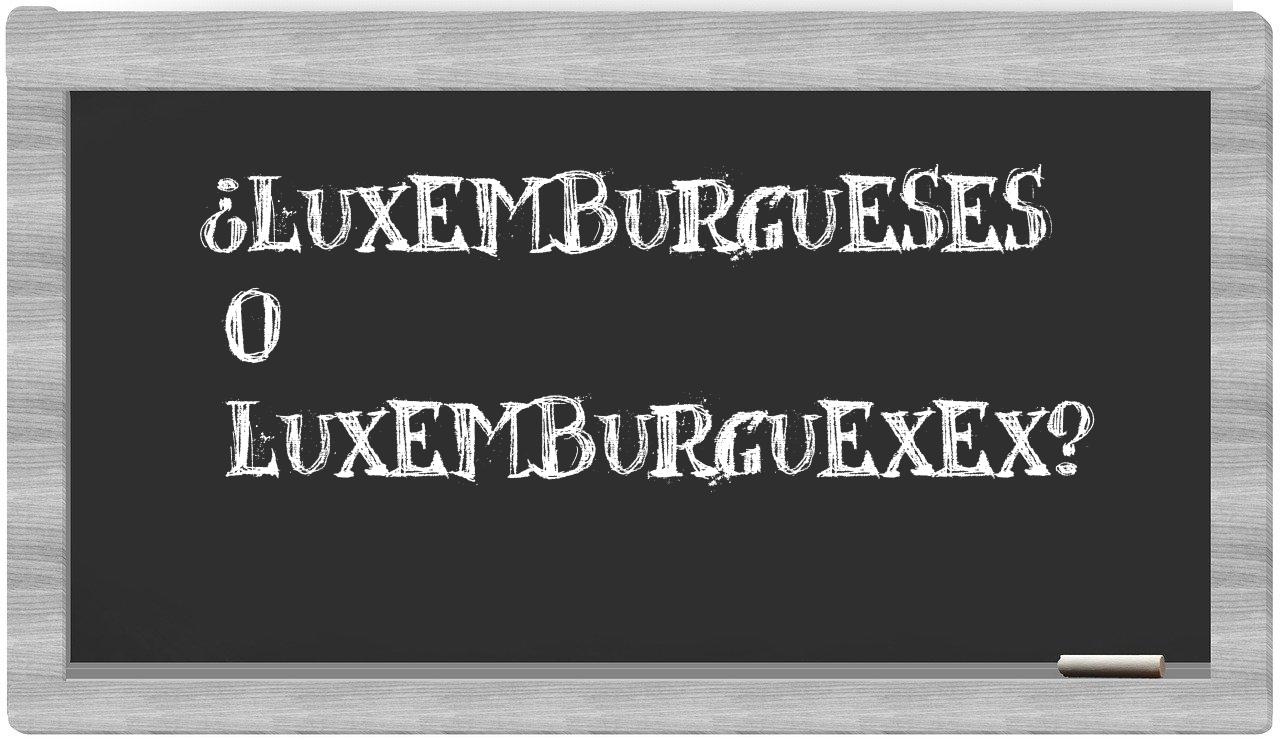 Cuando se trate de la elección entre luxemburgueses y luxemburguexex, no deberías titubear, pues únicamente luxemburgueses se presenta con la ortografía adecuada. Por otro lado, luxemburguexex no figura en el Diccionario de la Real Academia Española.