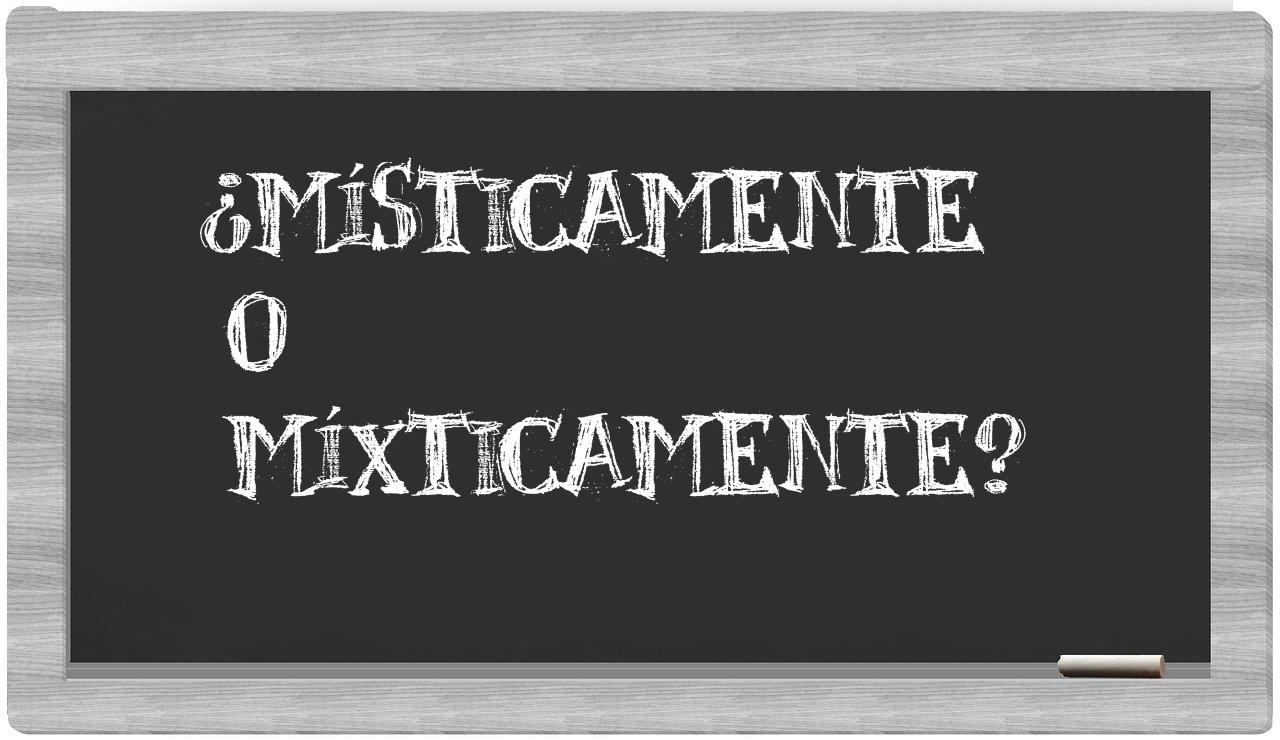 Cuando se presenta la disyuntiva entre místicamente y míxticamente, es fundamental que no vaciles, puesto que únicamente místicamente está debidamente registrada como correcta. Por otro lado, míxticamente no figura en el Diccionario de la Real Academia Española.