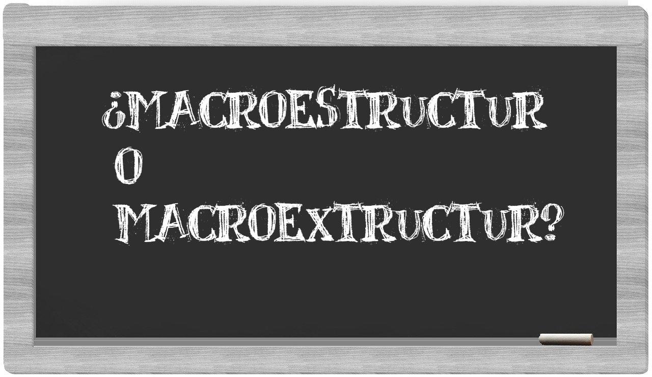 Cuando se trate de elegir entre los términos macroestructur y macroextructur, es fundamental que tengas claridad, puesto que únicamente macroestructur es la forma adecuada; macroextructur no está registrada en el Diccionario de la Real Academia Española.