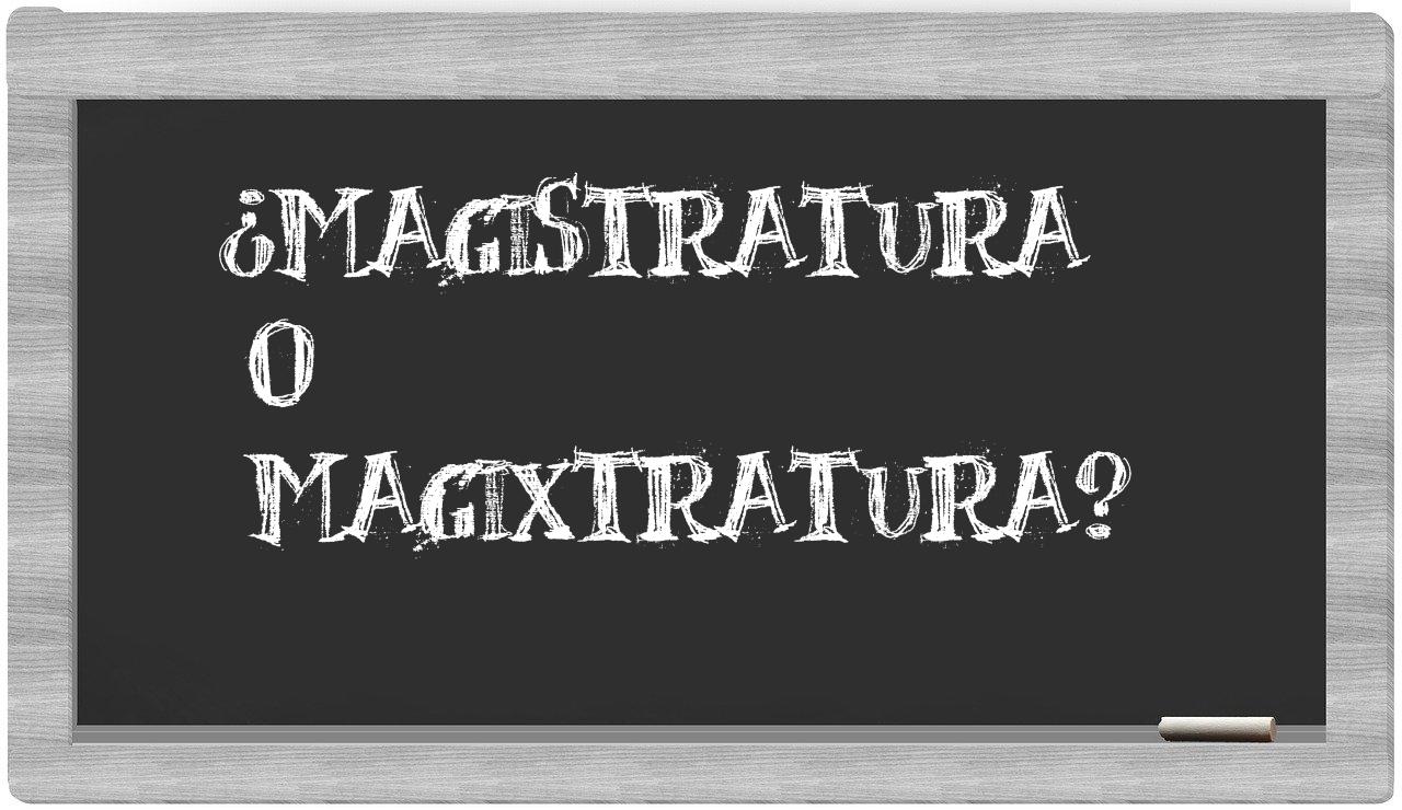 En la situación específica que involucra los términos magistratura y magixtratura, no debes titubear en tu elección, puesto que únicamente magistratura se encuentra correctamente redactada. Por otro lado, magixtratura no se encuentra registrada en el Diccionario de la Real Academia Española.
