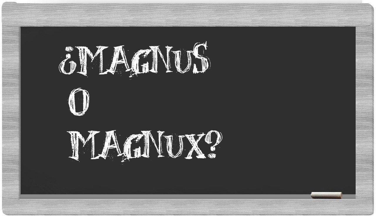En la situación particular que involucra los términos magnus y magnux, nunca deberías titubear, pues únicamente magnus es el que está redigido adecuadamente. Por otro lado, magnux no se encuentra registrado en el Diccionario de la Real Academia Española.