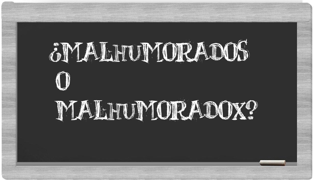 En la particular situación que existe entre los términos malhumorados y malhumoradox, nunca debería haber incertidumbre, puesto que únicamente malhumorados se encuentra correctamente formulada. La palabra malhumoradox no figura en el Diccionario de la Real Academia Española.