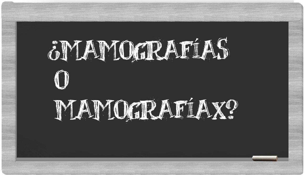 Cuando se trata de escoger entre mamografías y mamografíax, la decisión debería ser clara como el agua, dado que únicamente mamografías se encuentra debidamente registrada en el Diccionario de la Real Academia Española, mientras que mamografíax no tiene cabida en su prestigiosa colección de términos.