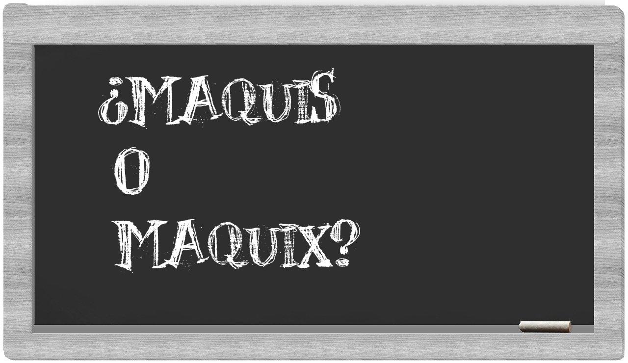 En lo que respecta a la comparación entre maquis y maquix, nunca deberías experimentar incertidumbre, porque únicamente maquis es la forma correcta de escribirlo. Por otra parte, maquix no tiene cabida en el Diccionario de la Real Academia Española.