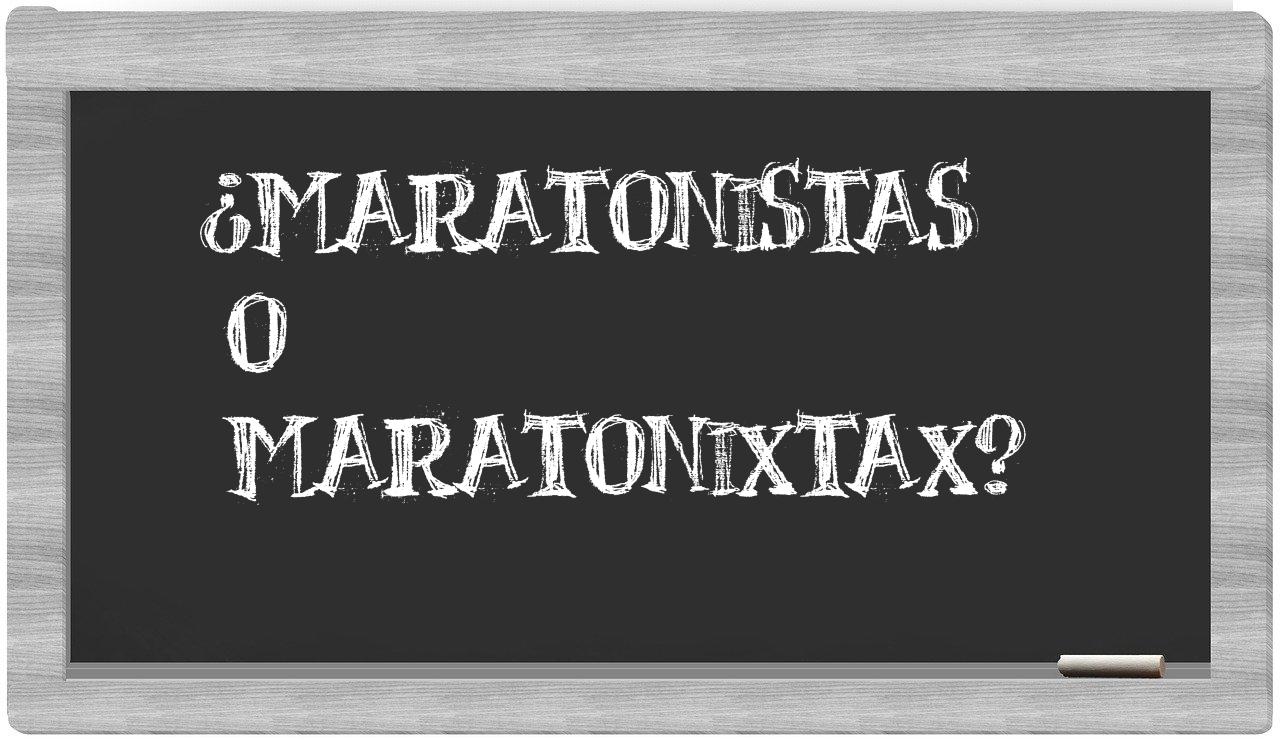 Cuando se trata de la comparación entre los términos maratonistas y maratonixtax, la elección es evidente, pues únicamente maratonistas pertenece a la correcta forma escrita. Por otro lado, maratonixtax no se encuentra registrado en el Diccionario de la Real Academia Española.