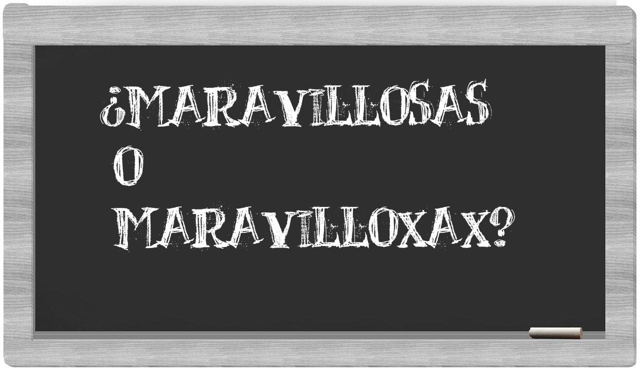 En la singular situación que involucra los términos maravillosas y maravilloxax, nunca deberías tener incertidumbre, porque únicamente maravillosas se encuentra correctamente redactada. Por otro lado, maravilloxax no está registrada en el Diccionario de la Real Academia Española.