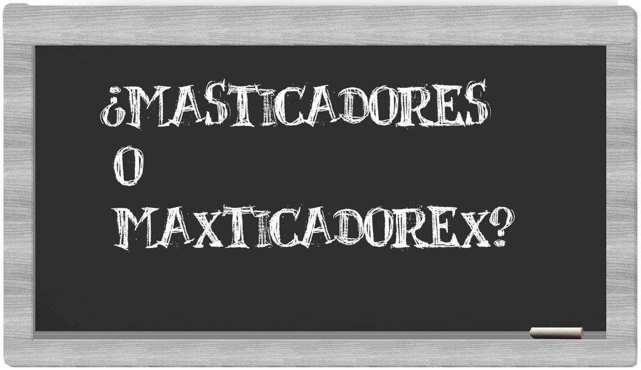 Cuando se trata de las expresiones masticadores y maxticadorex, la elección es clara: no hay motivo para titubear, puesto que únicamente masticadores es la forma correcta. Por cierto, maxticadorex no figura en el prestigioso Diccionario de la Real Academia Española.