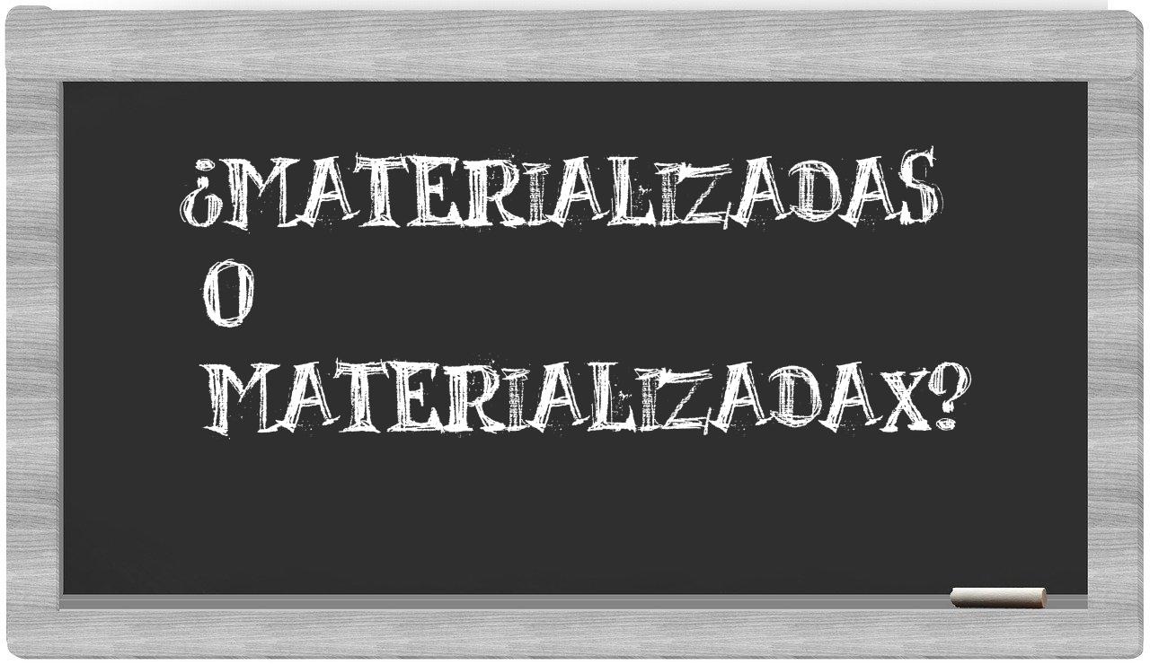 Cuando se trata de la relación entre materializadas y materializadax, no hay lugar para la incertidumbre, puesto que materializadas es la única que se encuentra registrada de manera adecuada, mientras que materializadax no forma parte del léxico del Diccionario de la Real Academia Española.