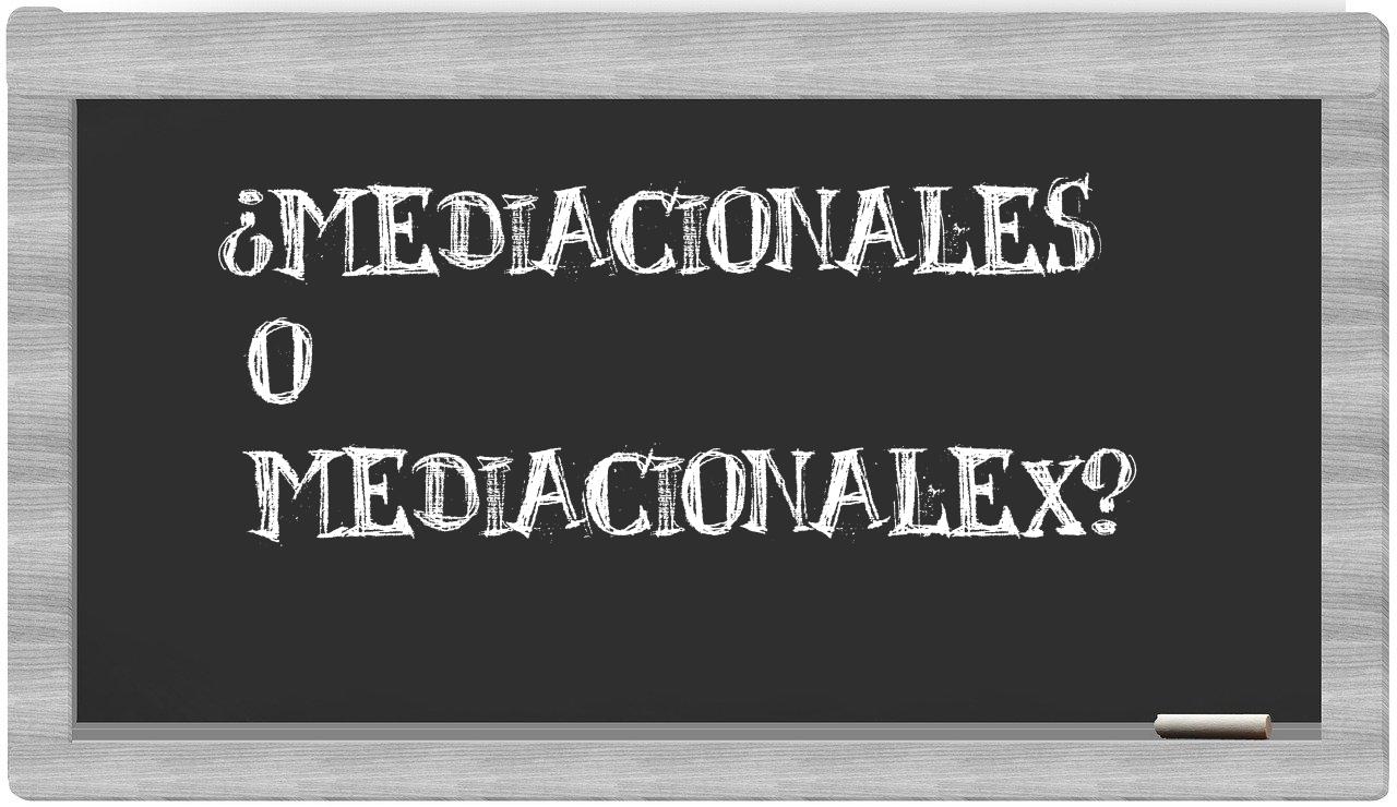 Cuando se trata de la elección entre mediacionales y mediacionalex, no hay lugar para la incertidumbre, puesto que únicamente mediacionales se presenta como la forma adecuada; mediacionalex ni siquiera figura en el diccionario de la Real Academia Española.