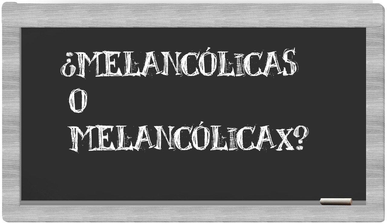 En la situación particular que involucra los términos melancólicas y melancólicax, no deberías titubear en absoluto, puesto que únicamente melancólicas es la forma adecuada, mientras que melancólicax carece de presencia en el Diccionario de la Real Academia Española.