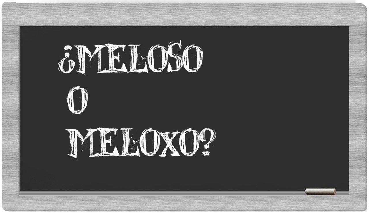 En la situación particular entre los términos meloso y meloxo nunca deberías titubear, puesto que únicamente meloso es el que se encuentra correctamente redactado. Por otro lado, meloxo no figura en el léxico de la Real Academia Española.