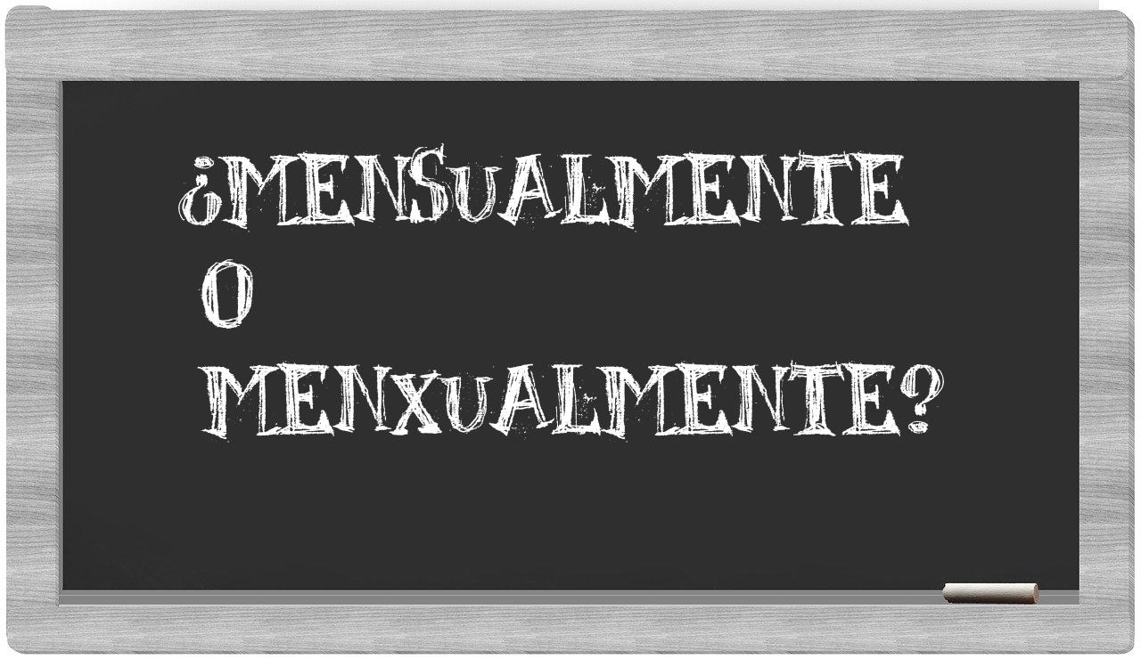 Cuando se trata de distinguir entre mensualmente y menxualmente, no cabe la menor duda; solo mensualmente es la opción adecuada, pues menxualmente no se encuentra registrado en el Diccionario de la Real Academia Española.
