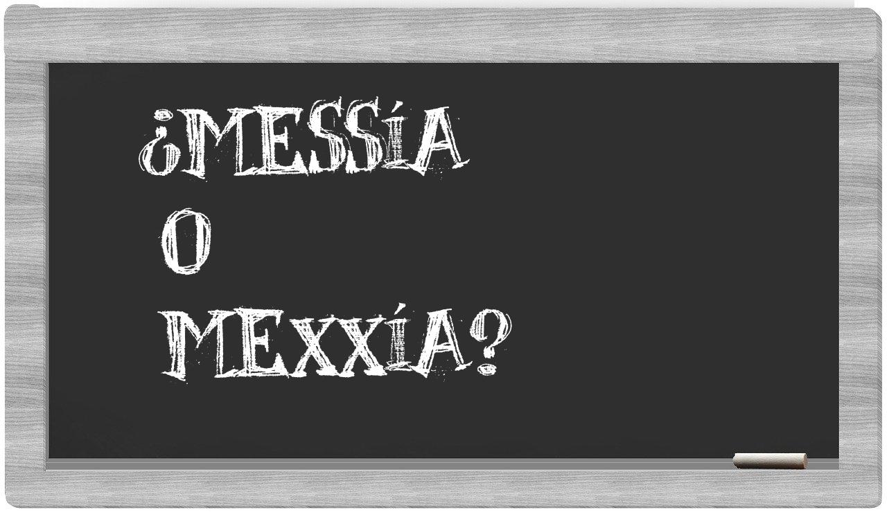 Cuando se presenta la disyuntiva entre messía y mexxía, es fundamental no vacilar, dado que únicamente messía es la que se encuentra adecuadamente redactada. Por su parte, mexxía no figura en el glosario de la Real Academia Española.