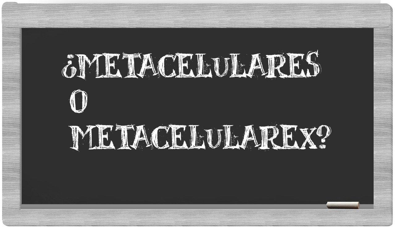 Cuando se trata de los términos metacelulares y metacelularex, no deberías titubear en tu elección, porque únicamente metacelulares es el que se encuentra correctamente redactado. Por otro lado, metacelularex no figura en el Diccionario de la Real Academia de la Lengua.