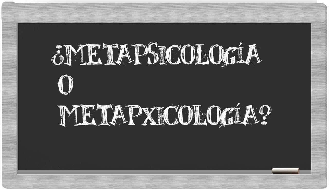 La mezcla entre metapsicología y metapxicología surge mayormente por la similitud en su pronunciación. En la gran mayoría de las variantes del español, ambas palabras tienen un sonido tan parecido que resulta fácil asumir que se escriben de forma idéntica. No obstante, la escritura adecuada de cada término está determinada por sus raíces etimológicas y por las particularidades de las normas ortográficas del idioma español.