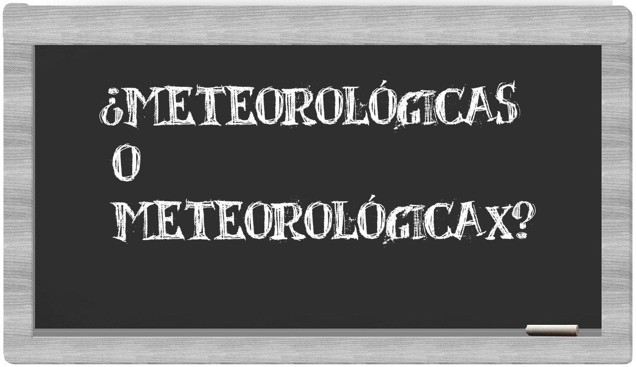 Cuando te encuentres ante las opciones de meteorológicas y meteorológicax, no vaciles en tu elección, puesto que únicamente meteorológicas es la que se encuentra debidamente aceptada, mientras que meteorológicax no figura en el Diccionario de la Real Academia Española.