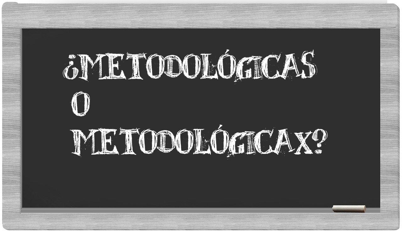En la situación particular que involucra los términos metodológicas y metodológicax, nunca deberías titubear, pues únicamente metodológicas es el que está redigido adecuadamente. Por otro lado, metodológicax no se encuentra registrado en el Diccionario de la Real Academia Española.