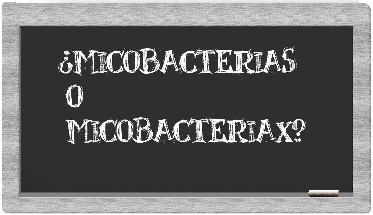 Cuando se trata de escoger entre micobacterias y micobacteriax, no hay lugar para la indecisión; es indiscutible que únicamente micobacterias es la opción correcta, dado que micobacteriax no figura en el reconocido Diccionario de la Real Academia Española.