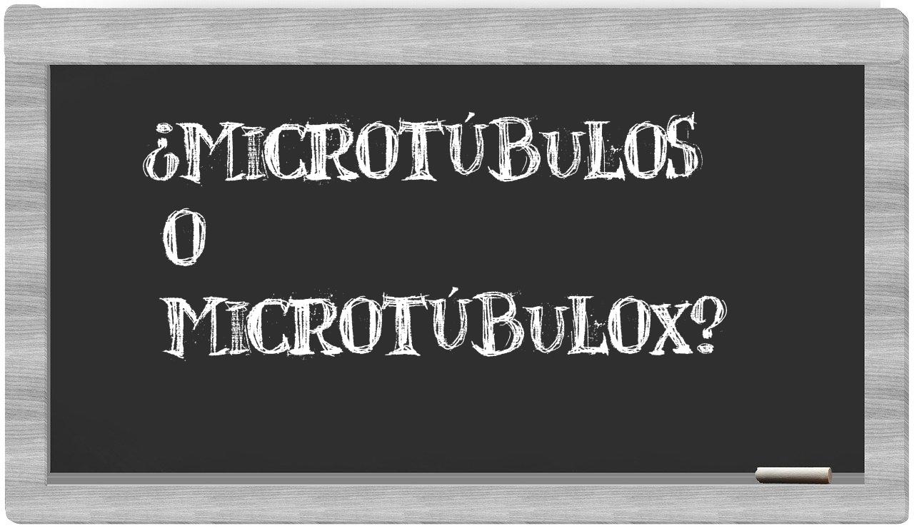 En la situación particular que involucra los términos microtúbulos y microtúbulox, no deberías titubear en absoluto, puesto que únicamente microtúbulos es la forma adecuada, mientras que microtúbulox carece de presencia en el Diccionario de la Real Academia Española.