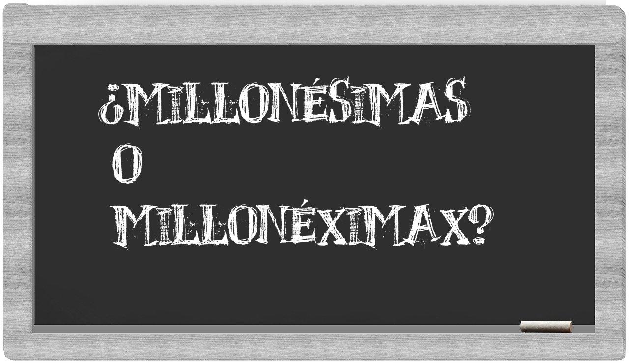 En la situación particular que involucra las palabras millonésimas y millonéximax, no deberías titubear, porque únicamente millonésimas es la que se encuentra debidamente registrada. La palabra millonéximax, por otro lado, no figura en el Diccionario de la Real Academia Española.