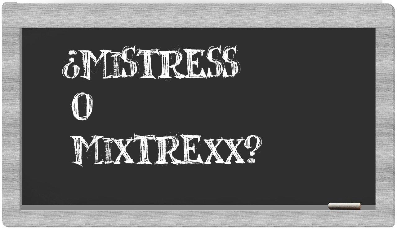 Cuando te encuentres frente a las palabras mistress y mixtrexx, no permitas que la incertidumbre te inunde, porque únicamente mistress cuenta con una redacción adecuada. Por su parte, mixtrexx carece de reconocimiento en el Diccionario de la Real Academia Española.
