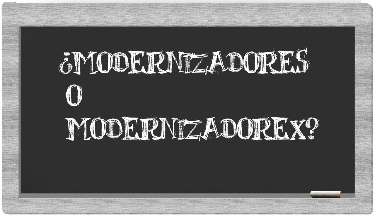 Cuando se trata de la elección entre modernizadores y modernizadorex, no hay lugar para la incertidumbre, puesto que únicamente modernizadores se presenta como la forma adecuada; modernizadorex ni siquiera figura en el diccionario de la Real Academia Española.