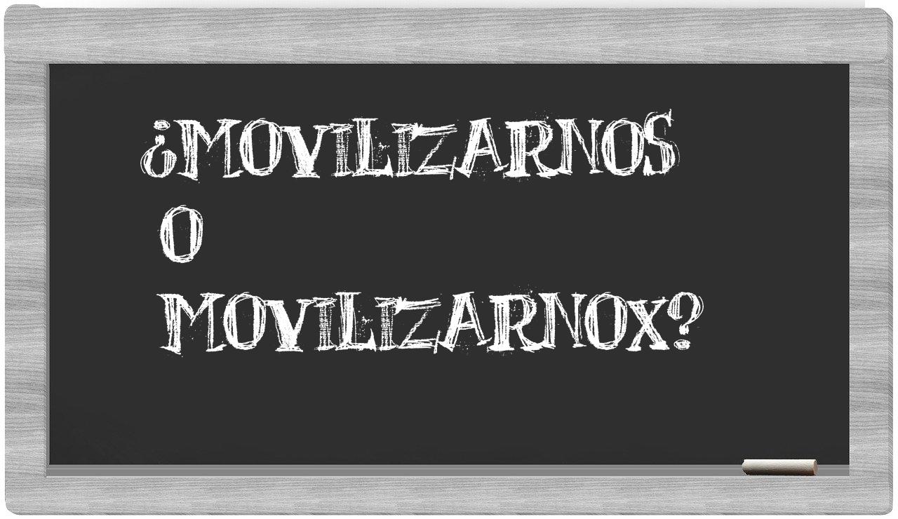Cuando se trata de las palabras movilizarnos y movilizarnox, no hay motivo para la confusión, puesto que únicamente movilizarnos es la forma adecuada; de hecho, movilizarnox no se encuentra registrada en el Diccionario de la Real Academia de la Lengua.