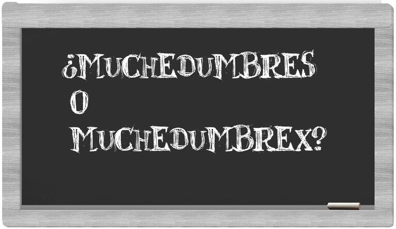 Cuando se trata de las palabras muchedumbres y muchedumbrex, no hay motivo para la confusión, puesto que únicamente muchedumbres es la forma adecuada; de hecho, muchedumbrex no se encuentra registrada en el Diccionario de la Real Academia de la Lengua.