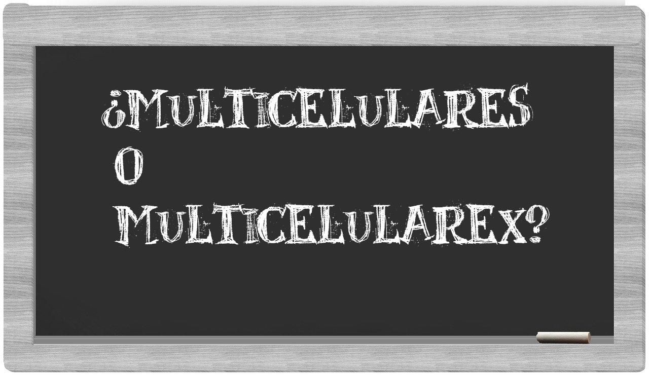 Cuando se presenta la disyuntiva entre multicelulares y multicelularex, es fundamental que no vaciles, puesto que solo multicelulares se encuentra debidamente consignada como adecuada. En cambio, multicelularex no se halla en el venerado Diccionario de la Real Academia Española.
