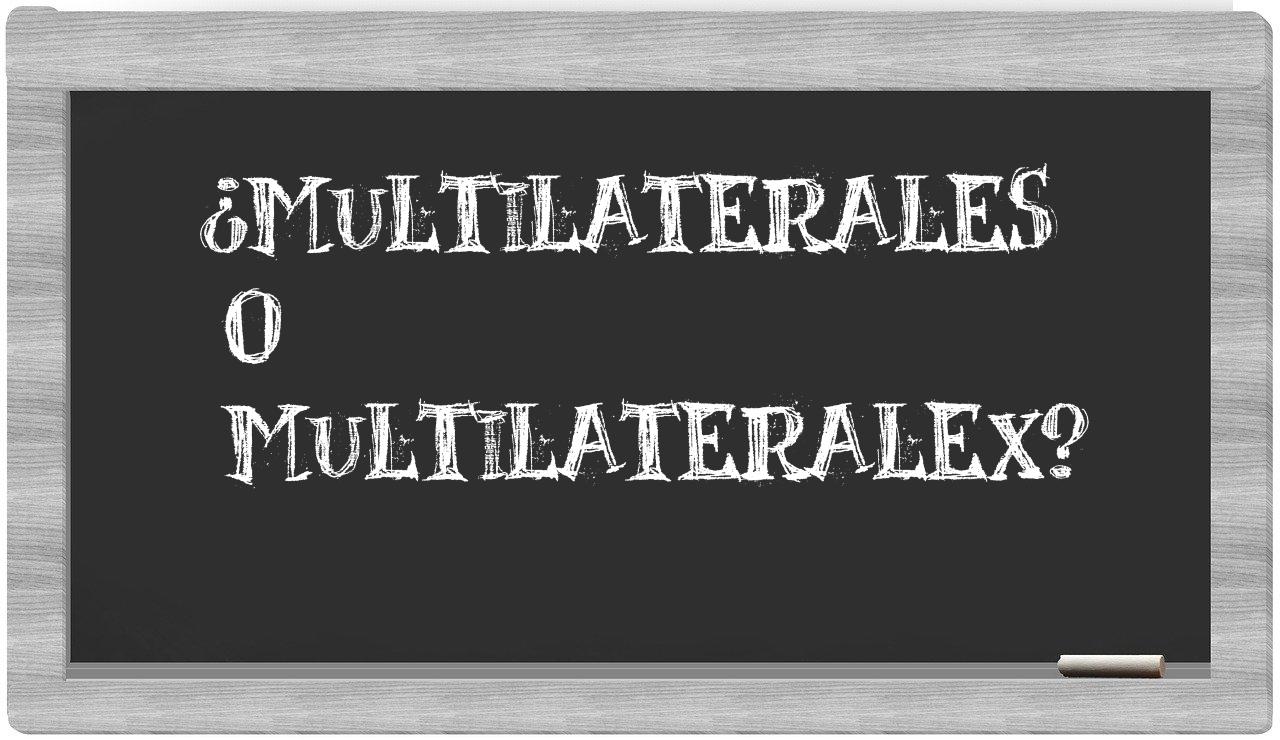 En la situación particular que se presenta entre el término multilaterales y su contraparte multilateralex, no deberías experimentar confusión, pues únicamente multilaterales se encuentra debidamente registrado y aceptado, mientras que multilateralex es una palabra que no tiene cabida en el Diccionario de la Real Academia Española.