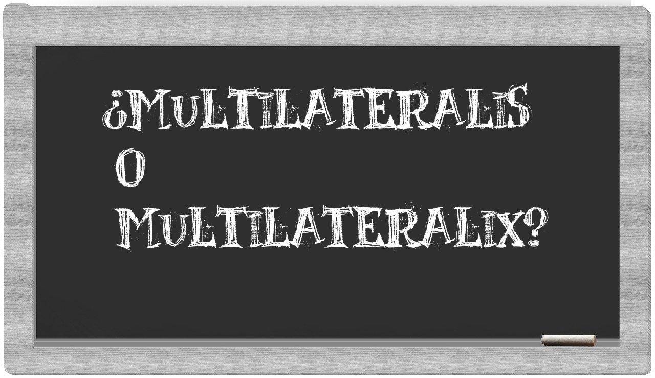 Cuando se trata de discernir entre multilateralis y multilateralix, es fundamental que no vaciles, porque únicamente multilateralis se encuentra bien escrita. En cambio, multilateralix no figura en el Diccionario de la Real Academia Española.