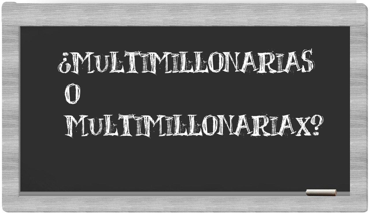 En la situación particular que se presenta entre los términos multimillonarias y multimillonariax, es fundamental que no te sientas inseguro, puesto que únicamente multimillonarias es la forma correcta de escribirlo. El término multimillonariax, por su parte, no figura en el Diccionario de la Real Academia Española.