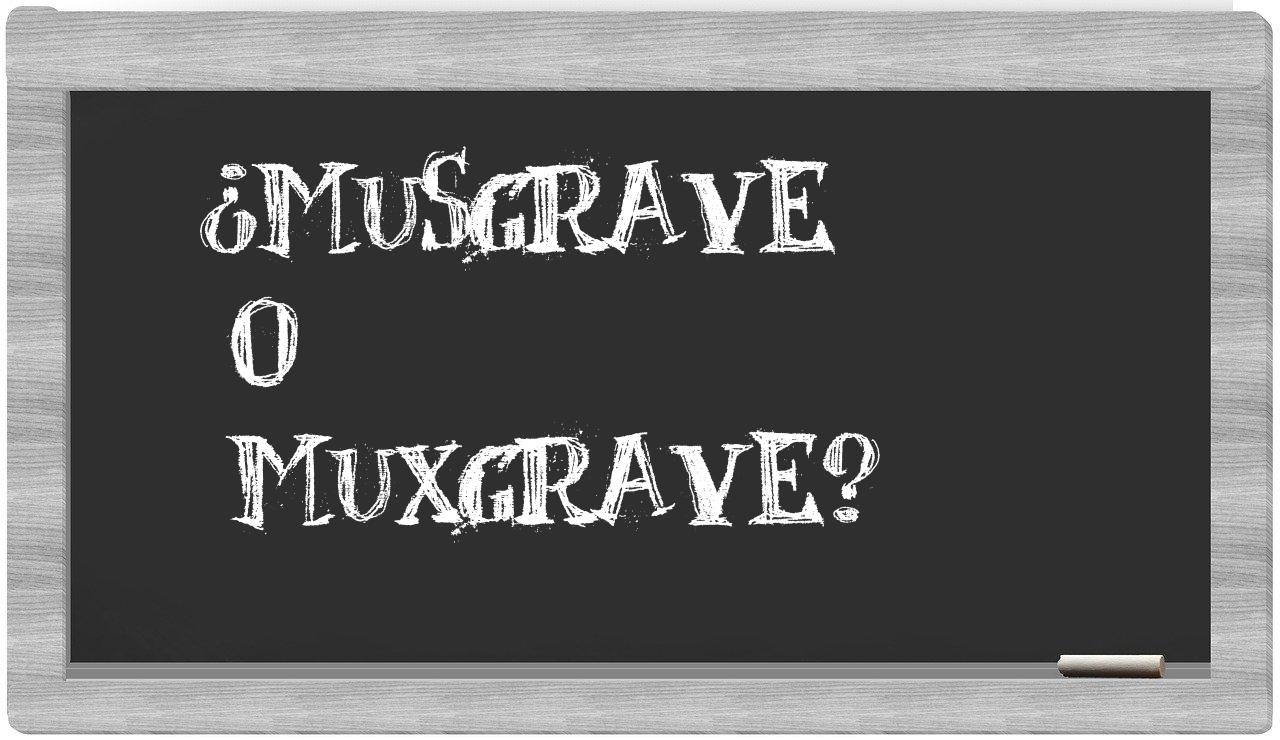 Cuando se presenta la elección entre musgrave y muxgrave, la decisión debe ser clara y sin titubeos, puesto que únicamente musgrave es la forma adecuada. Por otro lado, muxgrave no figura en el Diccionario de la Real Academia Española.