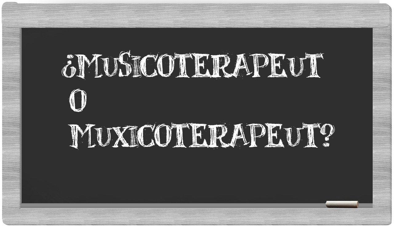 Al tener en cuenta la relación entre musicoterapeut y muxicoterapeut, es crucial que mantengas certeza, puesto que únicamente musicoterapeut está adecuadamente formulada. La palabra muxicoterapeut no tiene lugar en el Diccionario de la Real Academia Española.