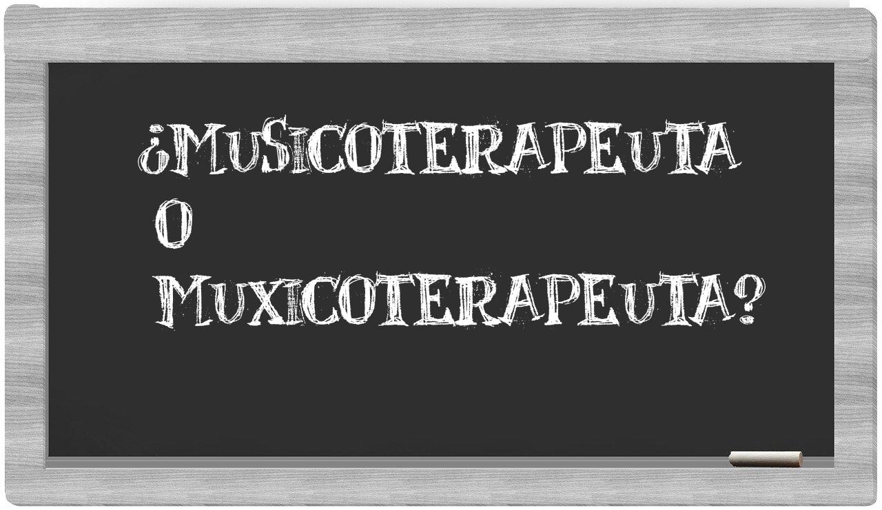 Cuando se presenta la disyuntiva entre musicoterapeuta y muxicoterapeuta, es fundamental que no haya incertidumbre, puesto que únicamente musicoterapeuta es la forma adecuada. Por otro lado, muxicoterapeuta no se encuentra registrada en el Diccionario de la Real Academia Española.