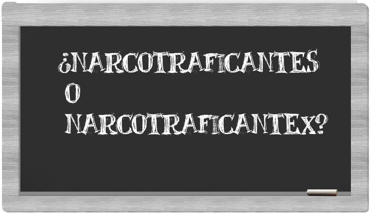 Cuando se trata de la elección entre narcotraficantes y narcotraficantex, no hay motivo para titubear, puesto que solamente narcotraficantes es la forma adecuada y aceptada, ya que narcotraficantex no se encuentra registrada en el Diccionario de la Real Academia Española.