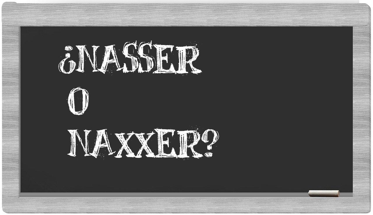 En la situación particular entre los términos nasser y naxxer nunca deberías titubear, puesto que únicamente nasser es el que se encuentra correctamente redactado. Por otro lado, naxxer no figura en el léxico de la Real Academia Española.