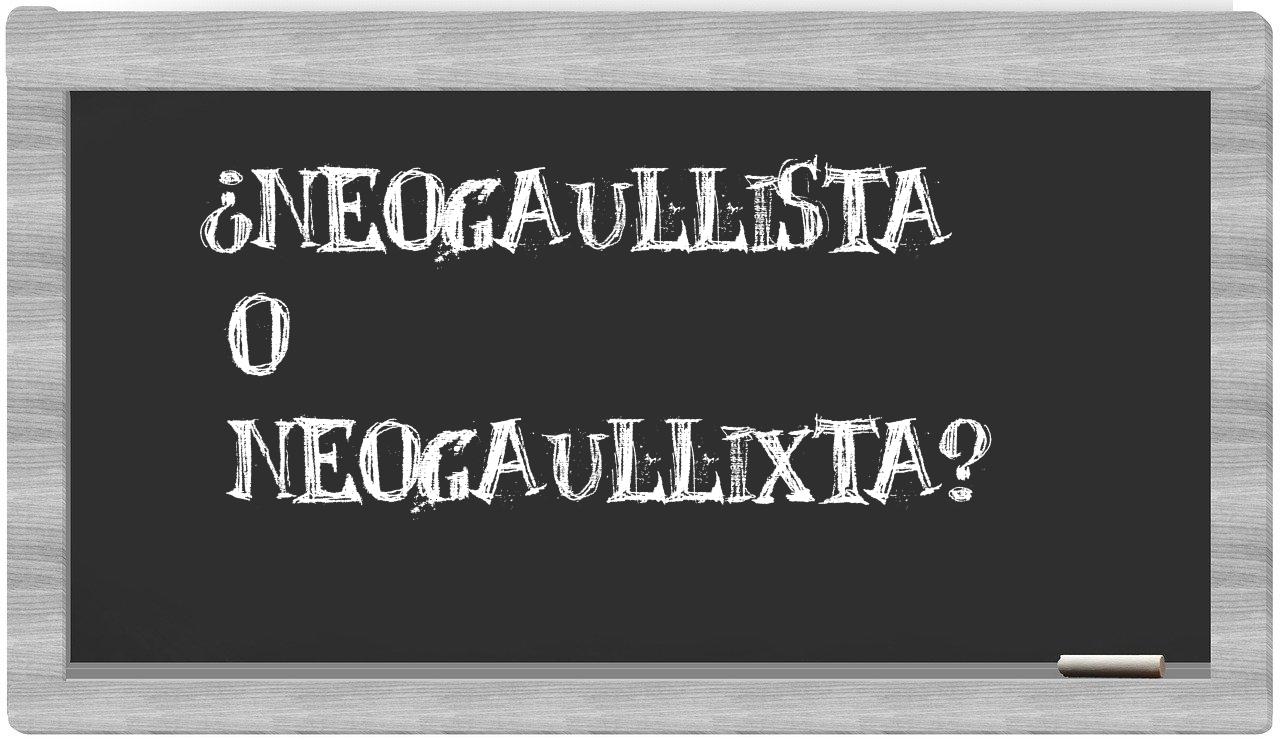 En la situación específica que involucra a neogaullista y neogaullixta, no deberías titubear ni un instante, pues únicamente neogaullista se encuentra correctamente redactada. Por otro lado, neogaullixta no figura en el Diccionario de la Real Academia Española.