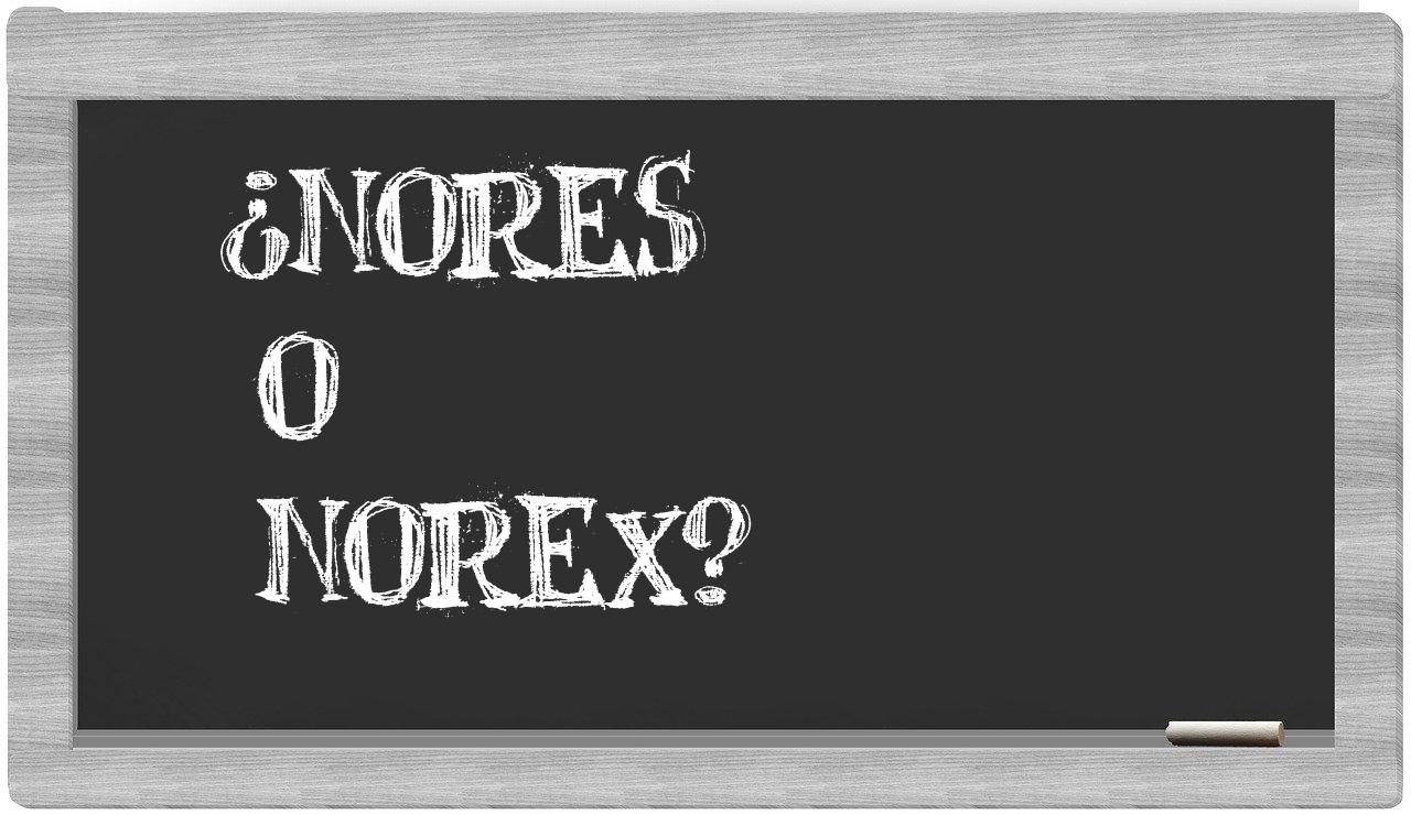 En la particular situación que existe entre los términos nores y norex, nunca debería haber incertidumbre, puesto que únicamente nores se encuentra correctamente formulada. La palabra norex no figura en el Diccionario de la Real Academia Española.